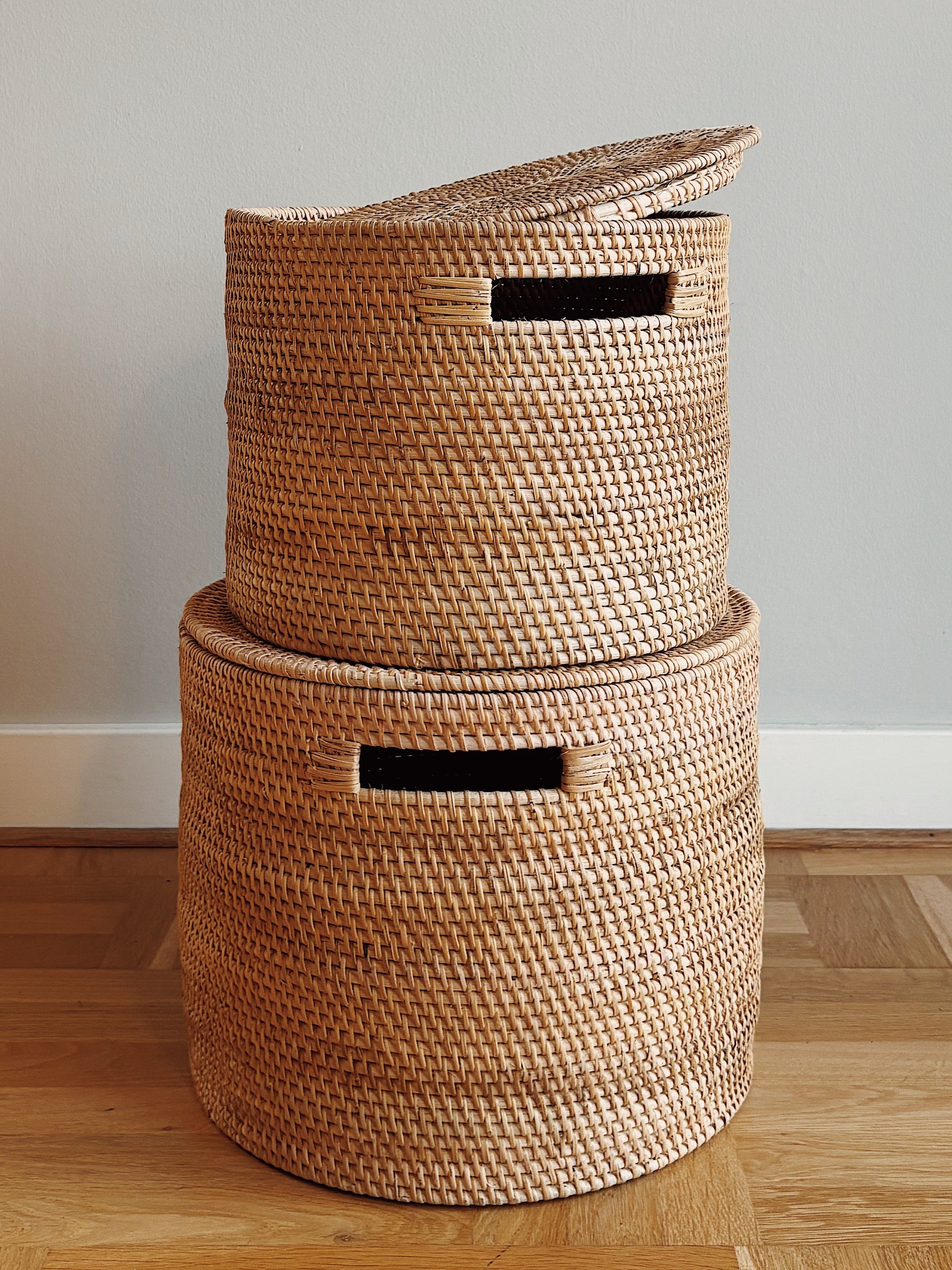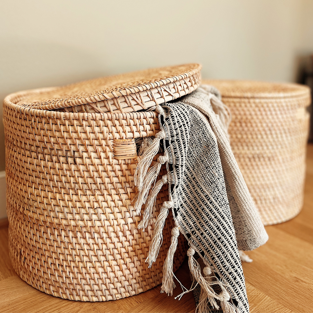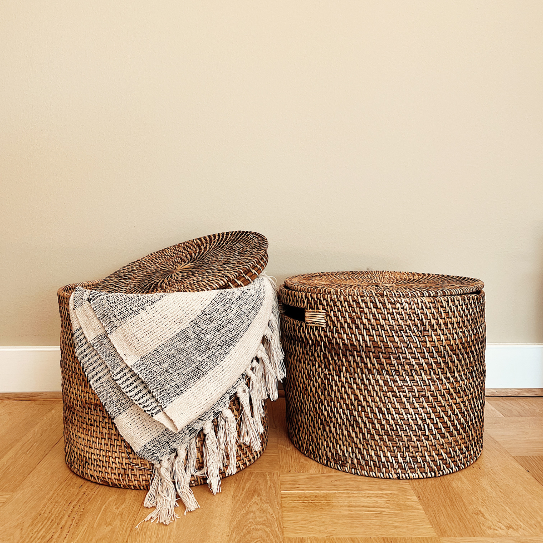Brug dem i stuen til at opbevare tæpper eller magasiner, i badeværelset for elegante løsninger til håndklæder eller vasketøj – eller endda i køkkenet til brød, frugt eller grønt.