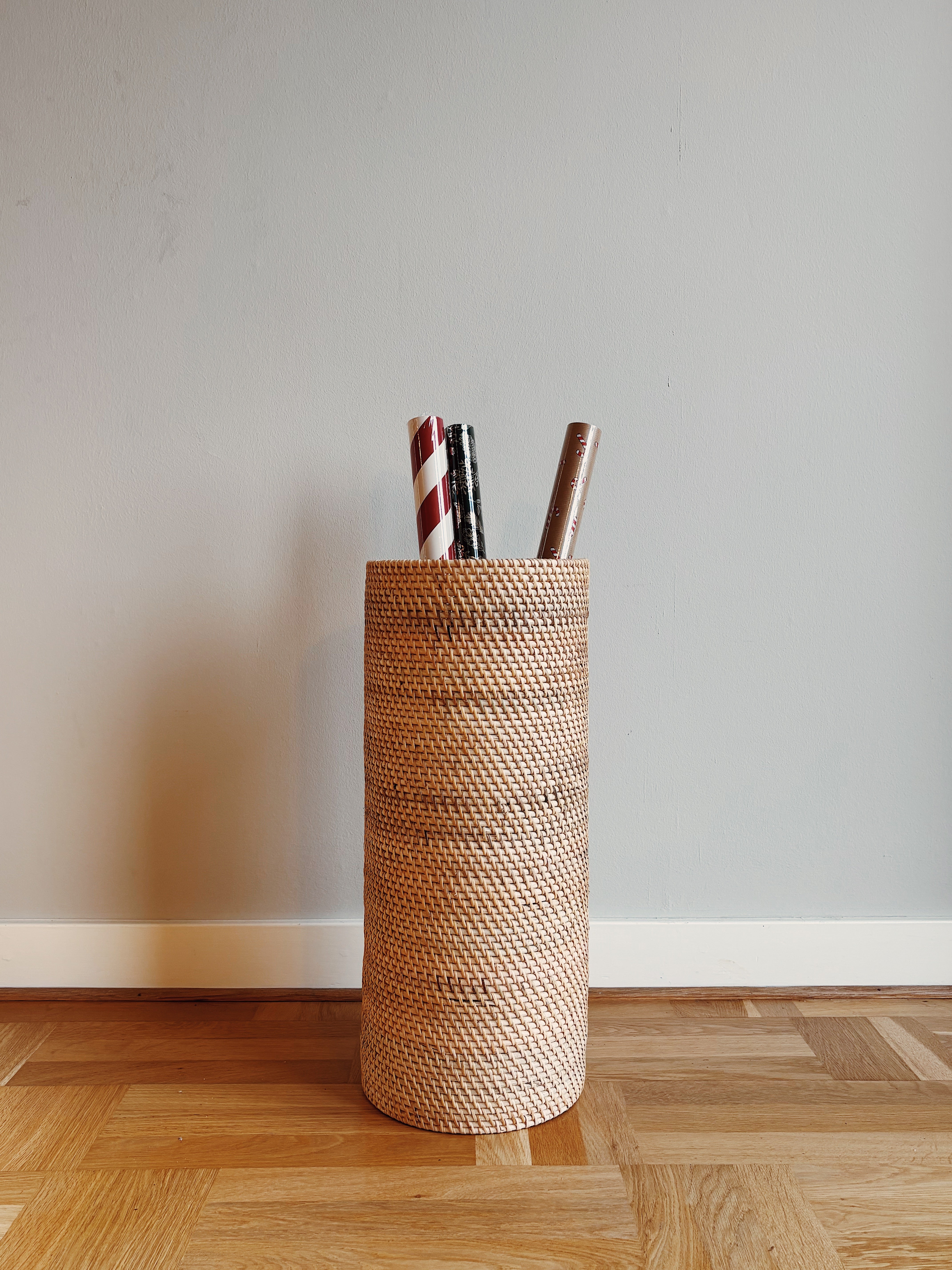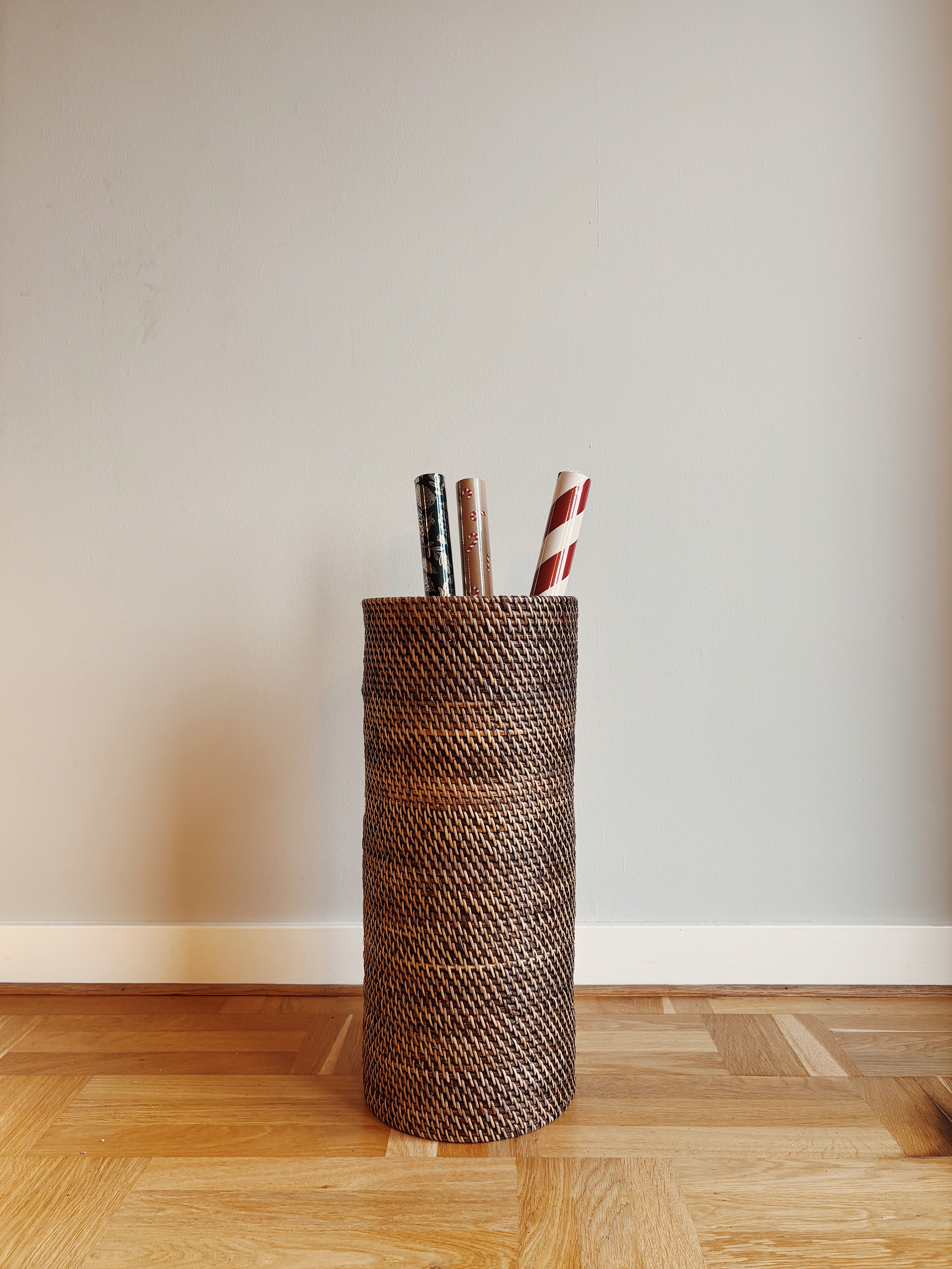 Den smukke Awan kurv er både funktionel og elegant. Den tilfører varme til entreen eller garderoben uden at overskygge din anden indretning. Den er lavet til opbevaring af paraplyer eller gavepapir og flettet i hånden af dygtige håndværkere i Indonesien.