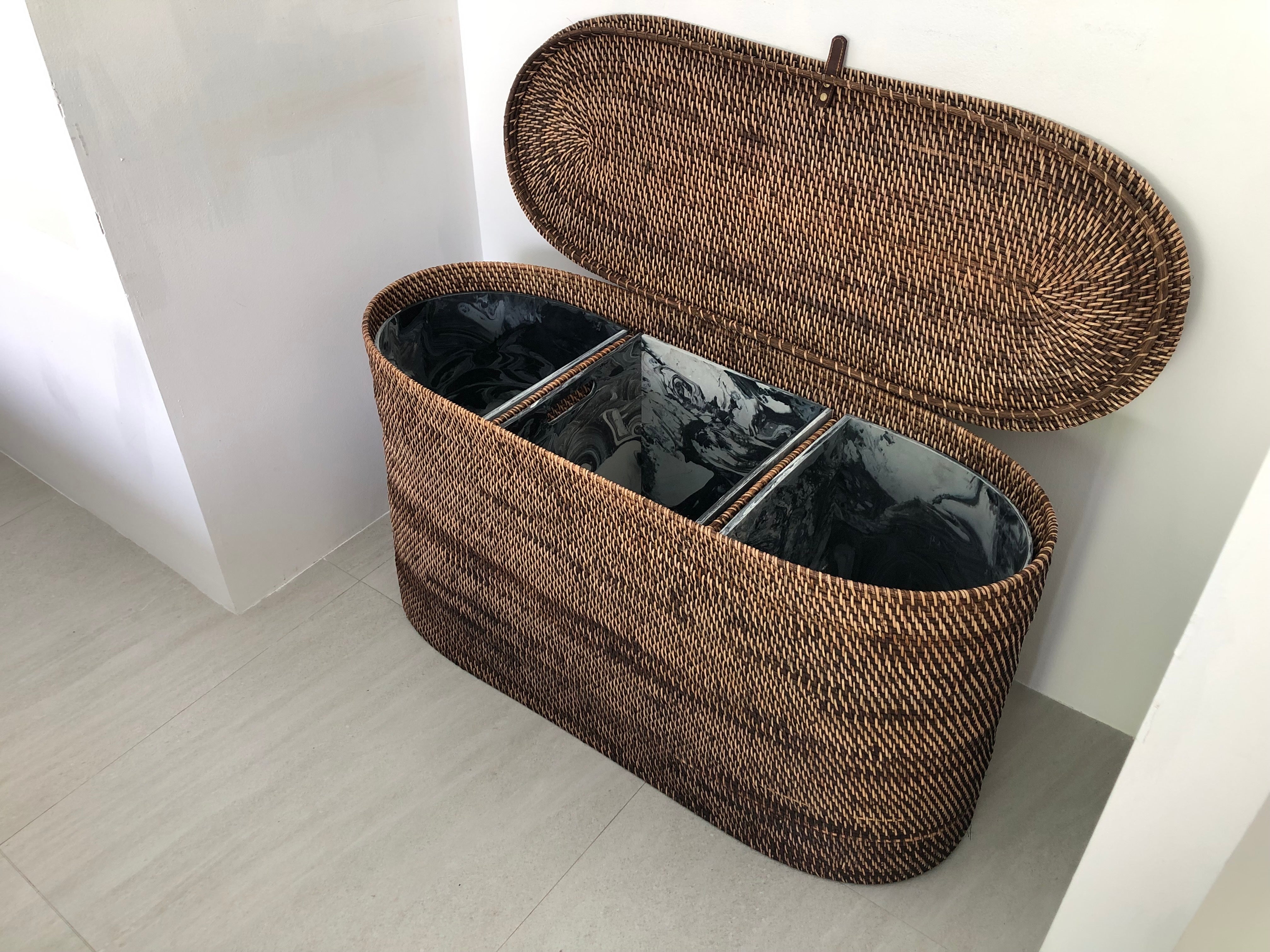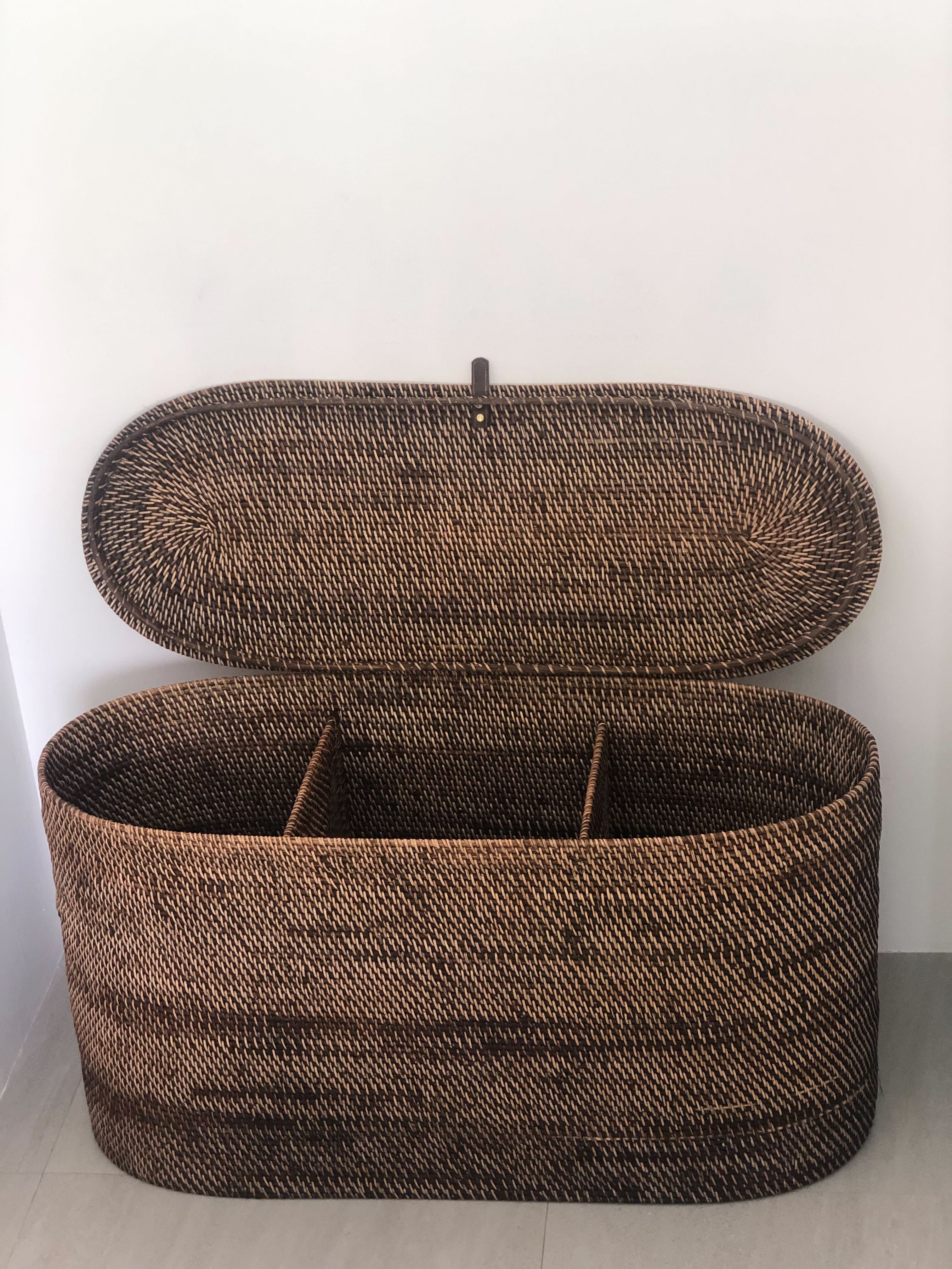 Den smukke, håndflettede kurv har tre rum med god plads. Kurven er flettet i det stærke materiale rattan – og kvaliteten er helt i top.